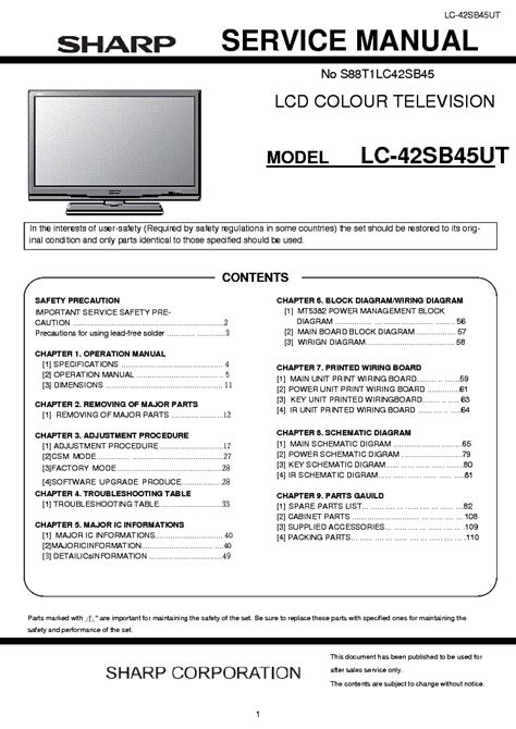 At present you are looking for an Sharp Lc 42sb45ut Lcd Tv Service Manual example that we provide here within some kind of document formats many of these as PDF, Doc, Energy Point, and also images that will make it simpler for you to create an Sharp Lc 42sb45ut Lcd Tv Service Manual yourself. For a more clear look, you are able to open some examples below. Each of the good examples about Sharp Lc 42sb45ut Lcd Tv Service Manual on this web site, we get from a number of sources so you may create a better file of your own.In case the search you acquire here does not match what you are seeking for, please make use of the research feature that we have got provided here. You are usually free to download anything at all that we provide in this article, expense cost you the particular slightest.